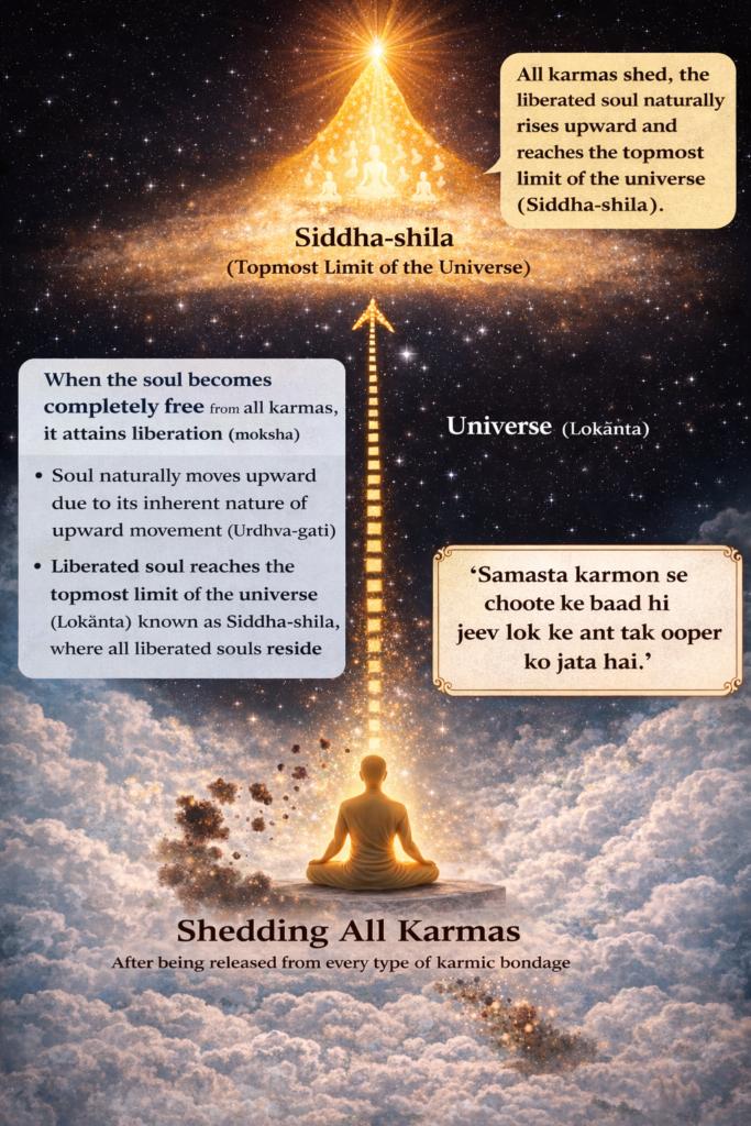 Immediately after that the liberated soul darts up to the end of the universe – lokānta