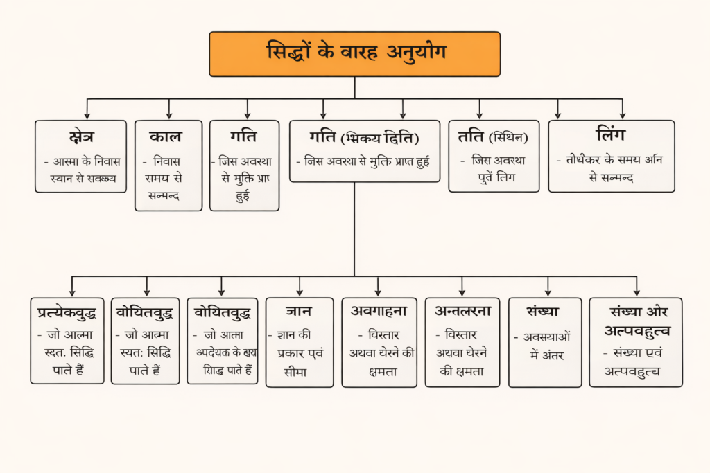 | 11. संख्या (1 समय में सिद्ध) | 108 जीव < 107-50 जीव < 49–25 जीव < 24–1 जीव |