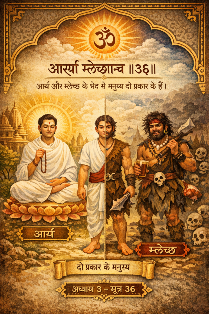 Human beings are of two kinds: the civilized (ārya) and the unevolved (mleccha ). Reference:Tatvartha-Sutra-तत्वार्थ-सूत्र-Vijay-K-Jain