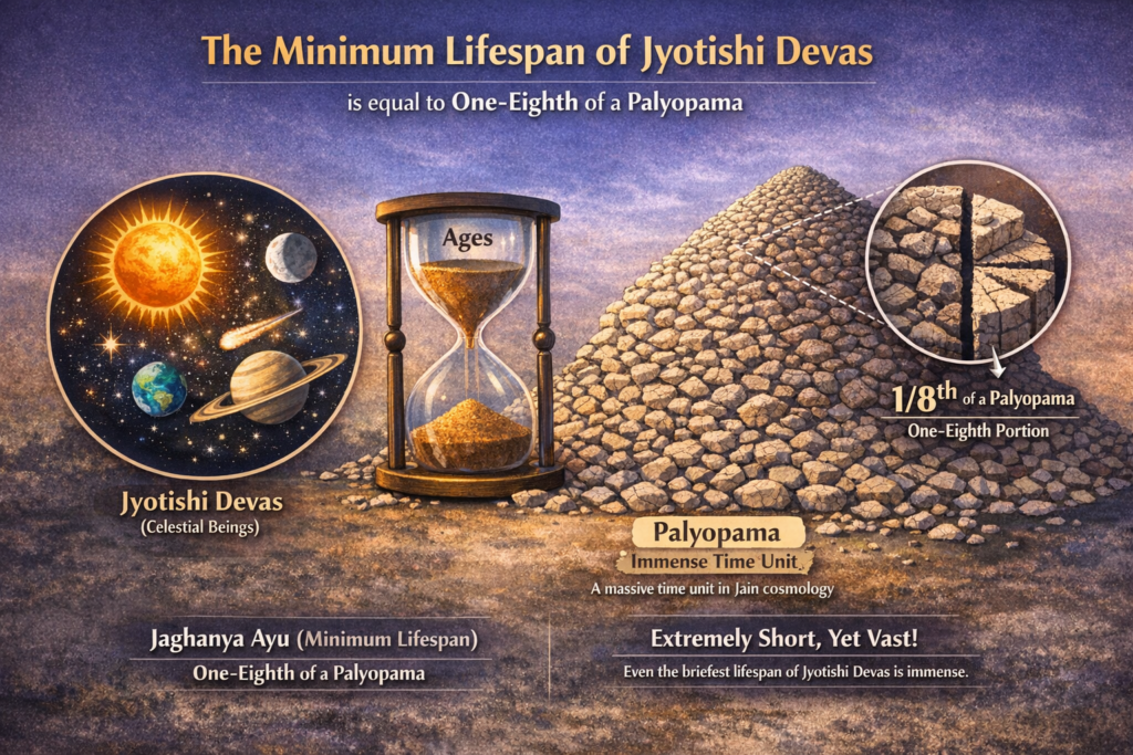 The minimum lifetime of the stellar (jyotiska) deva is one-eighth of their maximum lifetime.