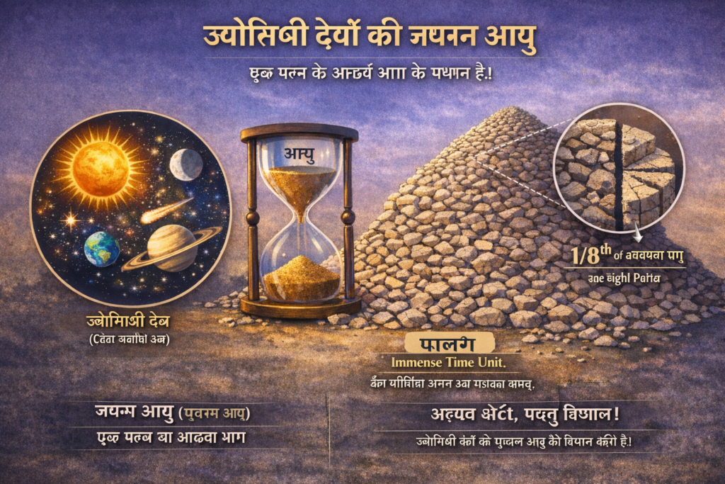 समाधान: ज्योतिष्क देवों में तारा तथा नक्षत्रों की जघन्य स्थिति पल्य के आठवें भाग प्रमाण है। शेष सूर्य, चन्द्रमा, राहु, मंगल, बुध, बृहस्पति, शुक्र और शनि की जघन्य स्थिति पल्य के चतुर्थ भाग प्रमाण जानना चाहिए।
