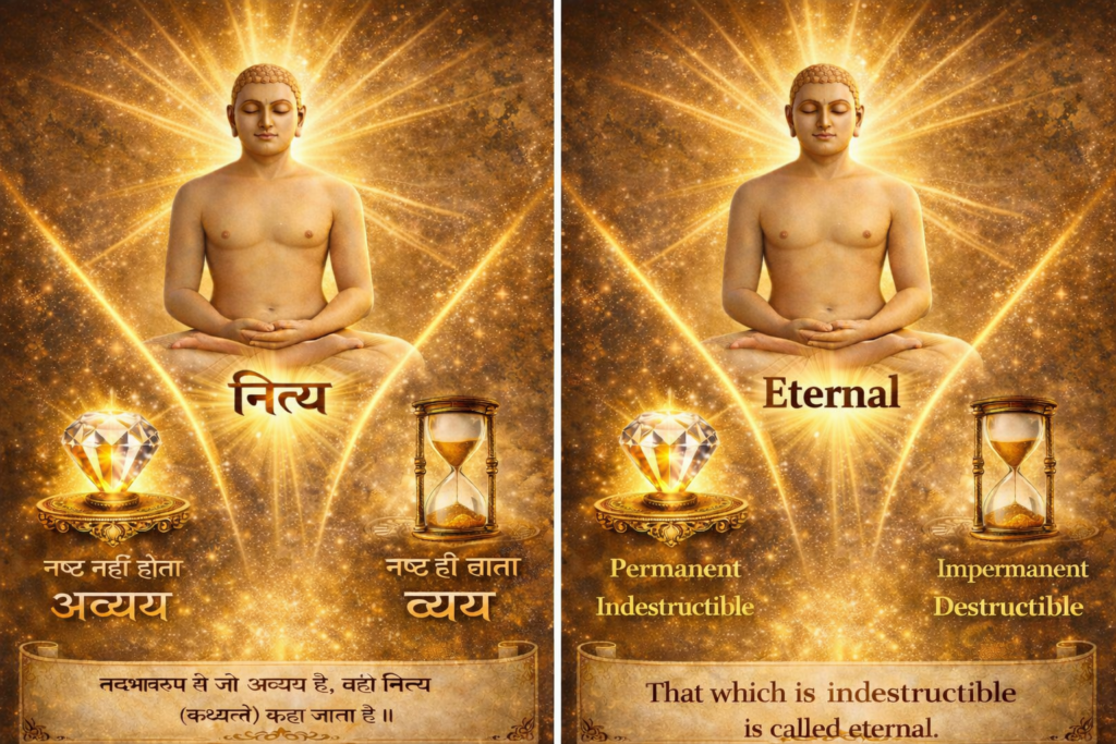 Permanence (nitya) is indestructibility of own-nature(tadbhāva). Reference:Tatvartha-Sutra-तत्वार्थ-सूत्र-Vijay-K-Jain