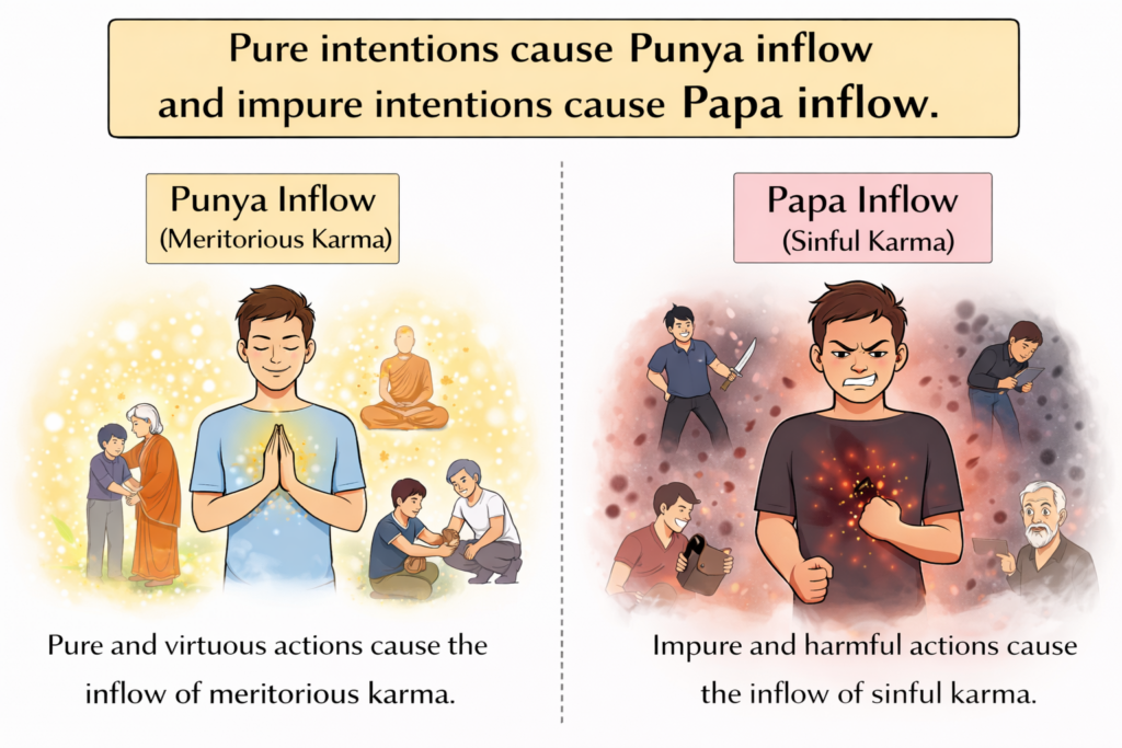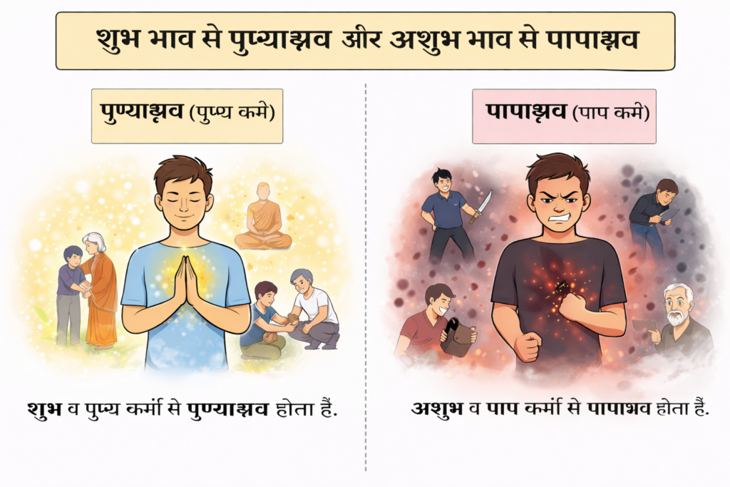 अर्थ: शुभ योग से पुण्य कर्म का आस्रव होता है और अशुभ योग से पाप कर्म का आस्रव होता है।