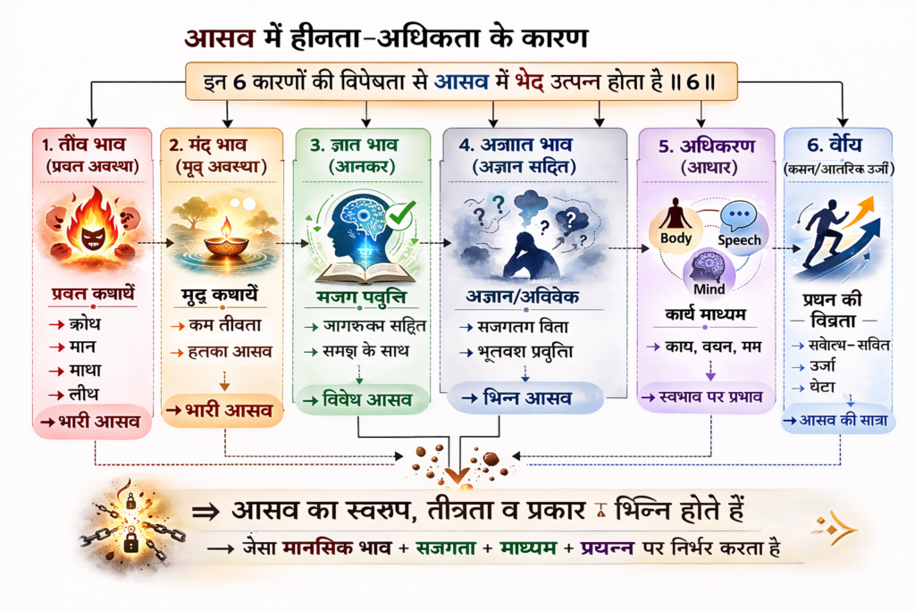 A["आस्रव में हीनता-अधिकता के कारण"] --> B["तीव्र भाव