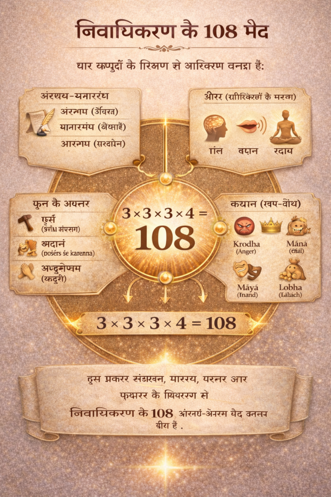 लोभ"] & F["कुल = 3 × 3 × 3 × 4 = 108
