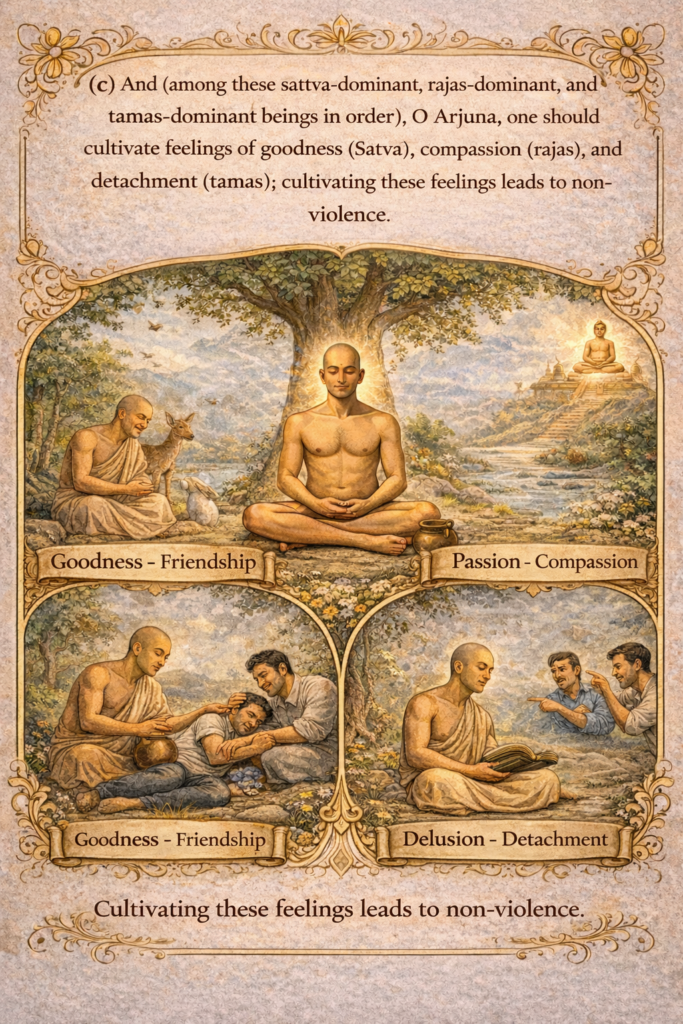 मैत्री प्रमोद – कारुण्य- माध्यस्थ्यानि च सत्त्वगुणाधिक- क्लिश्य मानाविनयेषु ॥ ११॥
