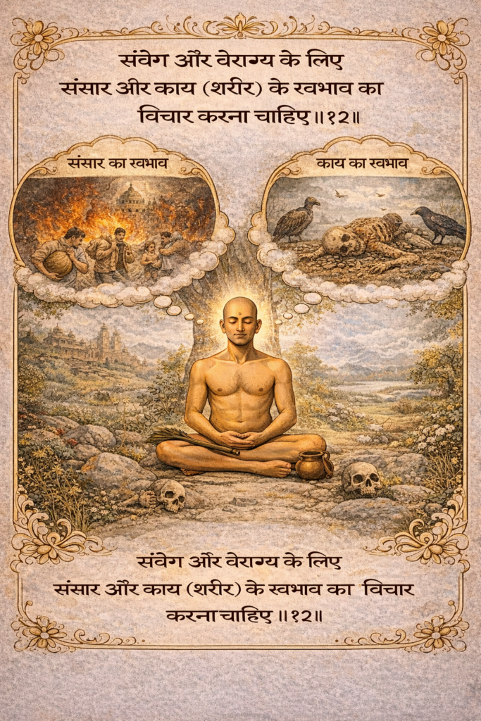 संवेग और वैराग्य के लिए संसार और काय (शरीर) के स्वभाव का विचार करना चाहिए॥१२॥