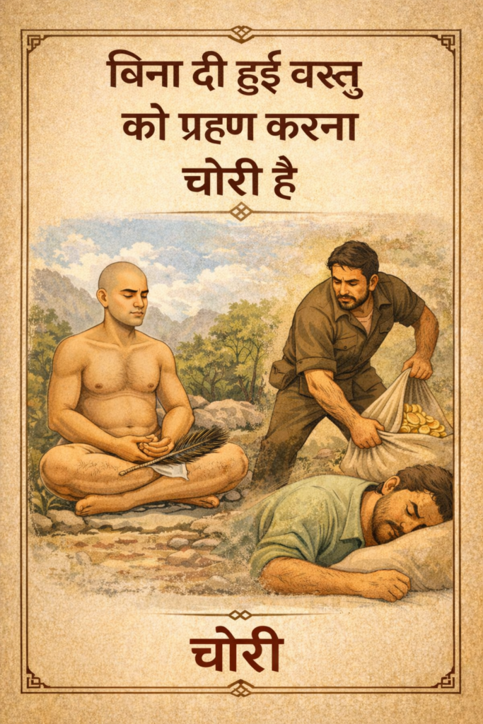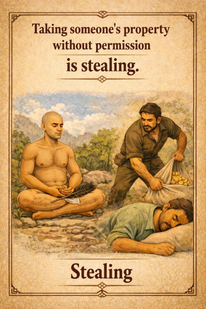 Taking anything that is not given is stealing (steya). Reference:Tatvartha-Sutra-तत्वार्थ-सूत्र-Vijay-K-Jain