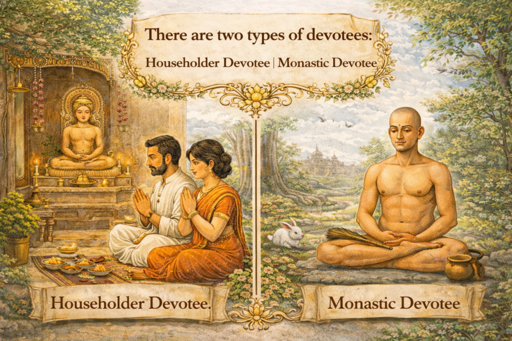 The householder – agārī – and the homeless ascetic – anagārī — are the two kinds of votaries (uratī). Reference:Tatvartha-Sutra-तत्वार्थ-सूत्र-Vijay-K-Jain