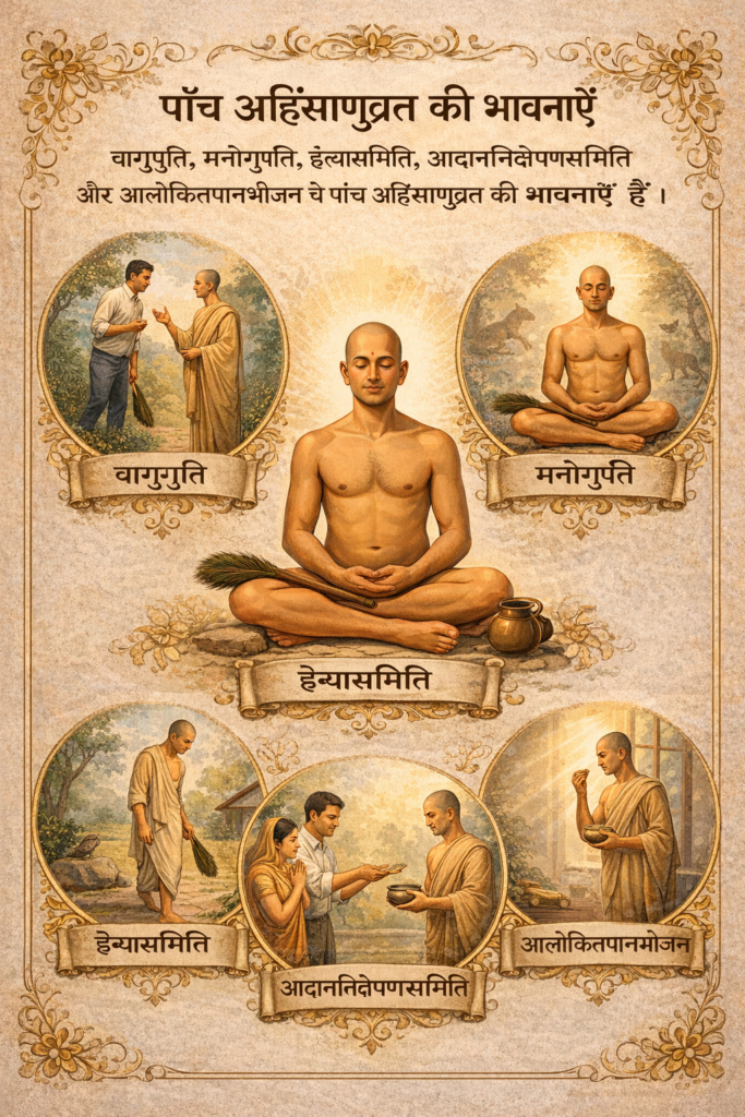 A["अहिंसा व्रत की भावनाएँ"]