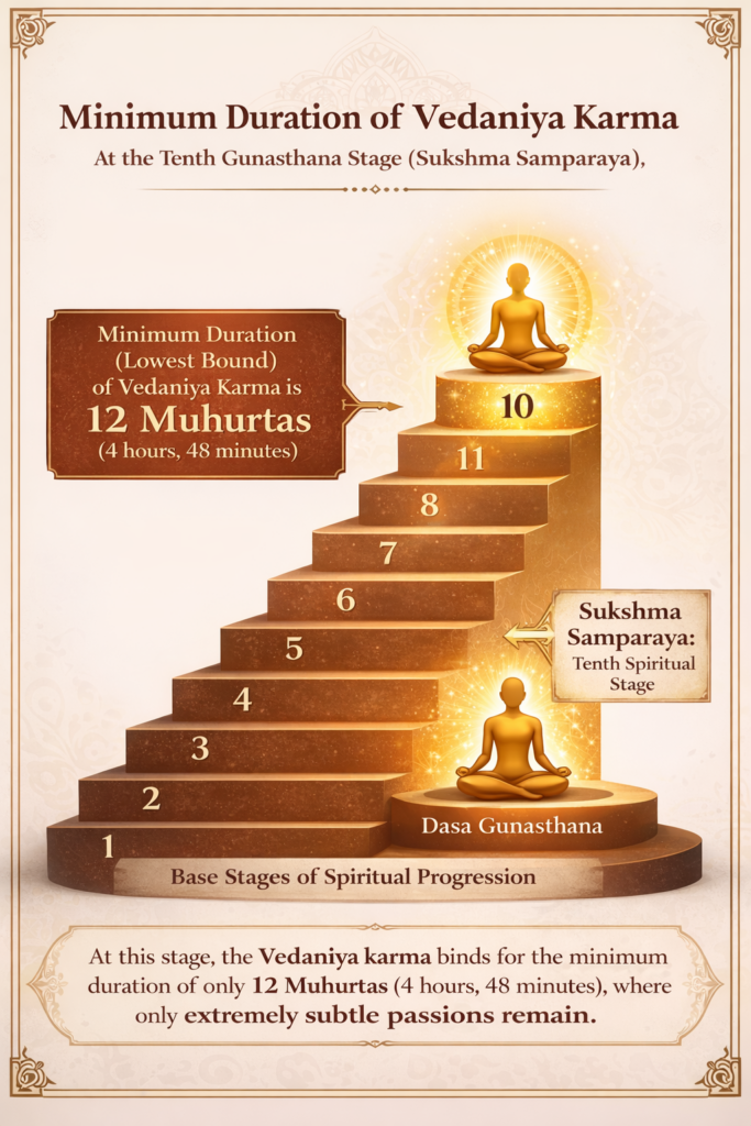 The minimum duration – jaghanya sthiti – of the feeling- producing (vedanīya) karma is twelve muhūrta.