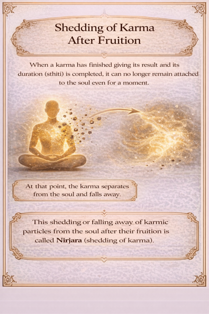 After fruition (anubhava), the shedding – nirjarā – of karmas takes place.