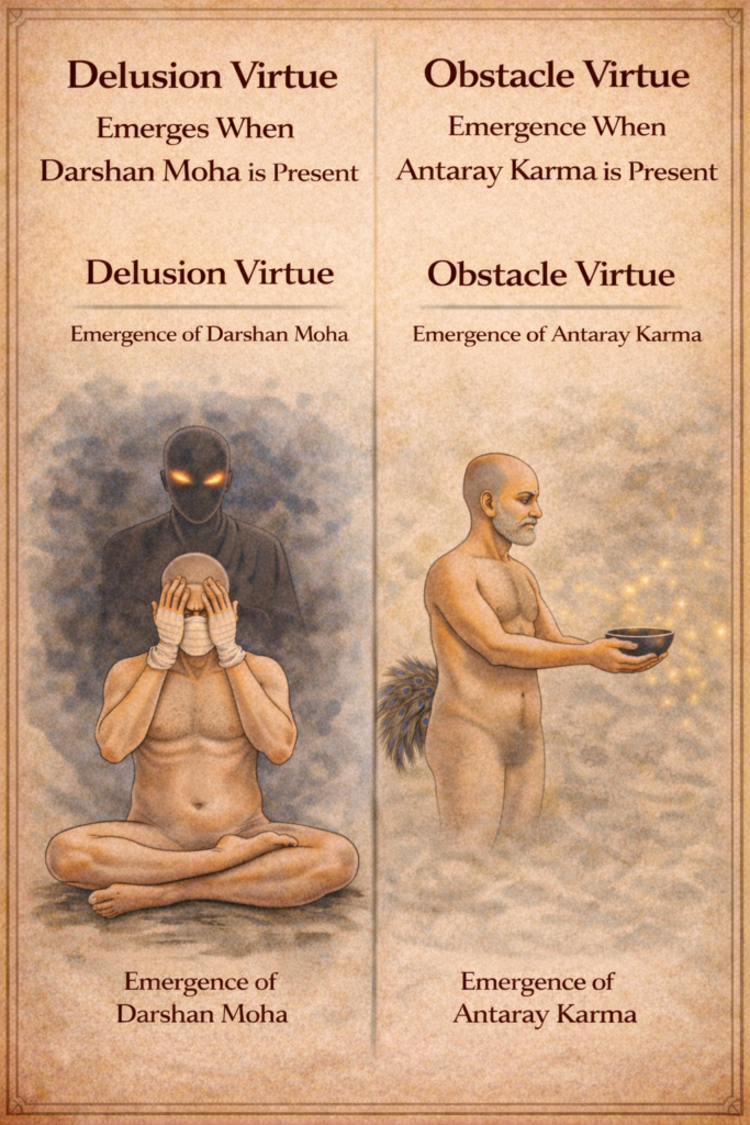Lack of faith – adarśana, and lack of gain – alābha, are caused by faith-deluding (darśanamoha) and obstructive (antarāya) karmas, respectively. Reference:Tatvartha-Sutra-तत्वार्थ-सूत्र-Vijay-K-Jain