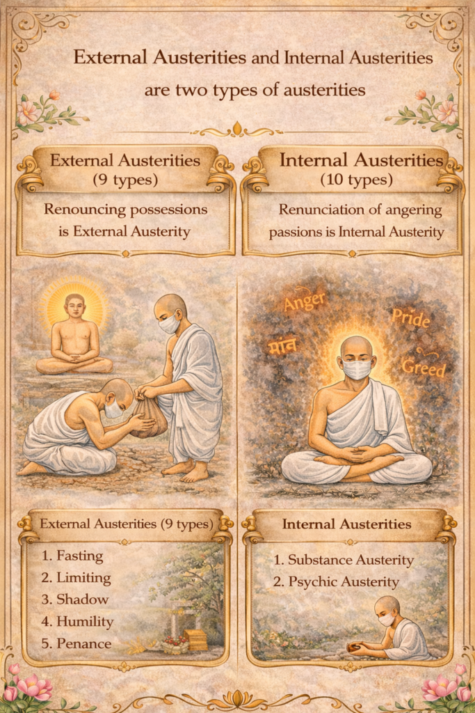 The two subdivisions of renunciation – vyutsarga – are: giving up external (bāhya) and internal (abhyantara) appendages (upadhi). Reference:Tatvartha-Sutra-तत्वार्थ-सूत्र-Vijay-K-Jain