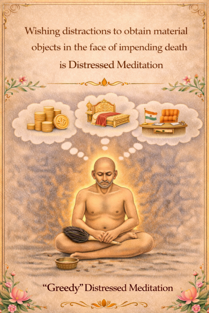 The wish for enjoyment – nidāna – is the fourth kind of sorrowful (ārta) meditation. Being tormented by the desire for pleasures, thinking again and again wishing for the pleasures not attained is the fourth type of sorrowful (ārta) meditation. Reference:Tatvartha-Sutra-तत्वार्थ-सूत्र-Vijay-K-Jain