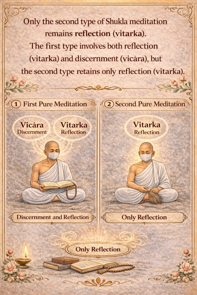 The second type – ekatvavitarka – is free from shifting (vīcāra). Reference:Tatvartha-Sutra-तत्वार्थ-सूत्र-Vijay-K-Jain